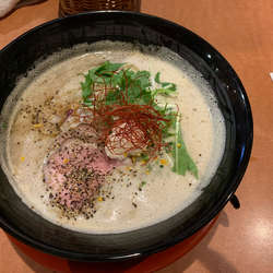 先回と一緒の麺ですが、ランチセットがお得ということで再注文。スープは泡立ちきめ細かく、豊潤の言葉に相応しい濃厚な味。麺は少なく感じるので、ライスが付いてるのは嬉しい。