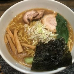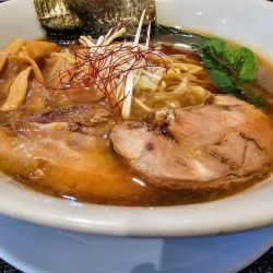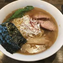 鶏ガラ・豚骨の動物出汁のボディが厚く濃度もそこそこあり、そこに香味野菜を加えて後味を軽くしていて煮干し出汁はエグミやビターな苦味などはないがしっかりニボ感を感じさせる旨味。二ボ感は煮干し出汁のみじゃなくて、他に仕上げにかける香味油に秘密があるようでネギ油に煮干しやカツオ節やサバ節を加えて魚介感を強調してるのかな... 続きを見る