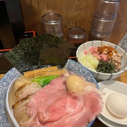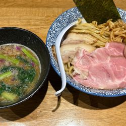 つけ汁は鶏白湯と魚介部分が分離してしまってる。何度かき混ぜても分離してしまう。いっそ、鶏白湯だけのつけ汁にした方が良いんじゃないかと思います。