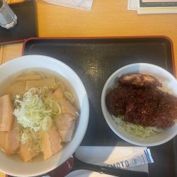 セットのカツは厚めで大きく食べ応えあり。ソースは甘めでスパイシーだがうまい。