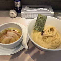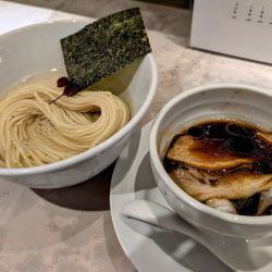| メニュー | メニューの写真を見る 昆布水つけ麺(しお・醤油)1350円 |