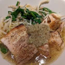 | メニュー | 自家製姜葱醬と煮豚の塩そば 1,000円 |