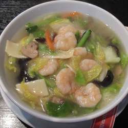 軽く濁りのあるスープは、海鮮のコクや具材の旨味も溶け込み割合厚みのある味わい。そこに塩だれの適度な主張が加わり、起伏を作り出し、全体をまとめ上げている。軽いとろみは部分的で、とろみの加減はゆるめ。