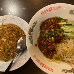 美容院近くの中華料理屋に。元祖高品質手打ちそばをアピール。冠水入れず小麦から手作りすることは難しく一級点心師以上の技術がないとできない本物の味とハードル激上げしてますがいかに。対面しての感想はうーん。肝心な麺は残念勝。よくシメてありますが普通の中太。甘肉味噌ダレに合いますがこれと言った特徴はありません。炒飯は間違いなく美味かったです。棒餃子が旨そうだった。