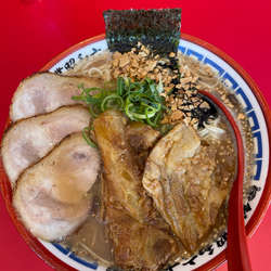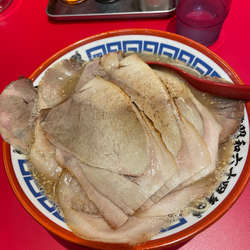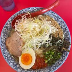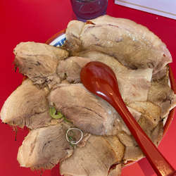 11時訪問。先客数名、口頭注文、食後会計。大盛りは無料。トロ肉のチャーシューとロース肉のチャーシュー、海苔、味玉半分、ネギは新鮮です。自家製麺は見た目は冷麦のような真っ白なビジュアル。塩梅辛めのスープに良く合います。濃いめのスープは味玉、トロ肉等の具材とも合い、絶妙な感じです。ご馳走様でした。また来たいです。