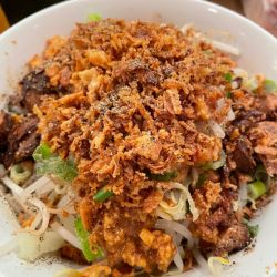 魅惑の第2ビル、(月)お昼ちょうど〜行列5人目〜20分程で店内へ。麺増し50gとアブラ増し。横から撮れば良かった、アブラ降り積もる山頂の標高は結構高い。淡麗で濃いめ、醤油を満喫できるクリアブラックスープに極太ストレート麺、美味い、最高。独自性があって、ごはんに合う一杯。