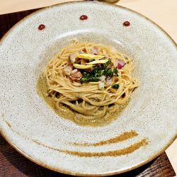 この日は、つくばにある鬼者語出身の方が独立して昨年10月にオープンした我孫子の【与しおか】にてラーメンをいただきつつ、追加で和え玉メニューの≪〆そば①・味付け〆そば≫を発注していただきました🍜