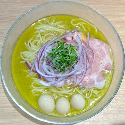 見た目は洋風でエレガント。スープはクリーミーでエスプーマ調で上質。鯛にあさりにチーズとあったが最初牡蠣が入ってるのかと思うくらい魚介が強く感じたがだんだんやんわりしてくるがしっかり濃厚。平打ち麺はほぐしながらリフトしないと跳ねまくりますので注意。ガーリックバタートーストや低温チャーシュー、ブロッコリースプラウトもしっかりマリアージュ。ラーメンというよりパスタ?いやちゃんと洋風カ... 続きを見る