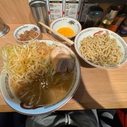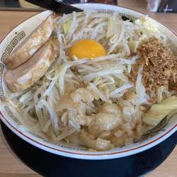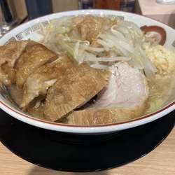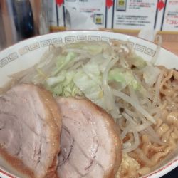 二郎系ならではのモリモリの野菜に極太麺、さらに濃厚な豚骨醤油スープに厚切りのチャーシューを堪能できます♪