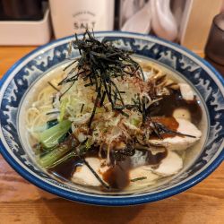 いただいたのは夏季限定の和風冷やしラーメン。馬油が浮く冷たいスープに小松菜、水菜、頂点に刻みノリが山盛りに。なかなか個性的なビジュアルです。まずはスープを一口。雑味のないすっきりしたお味です。これが、鶏ガラを手... 続きを見る