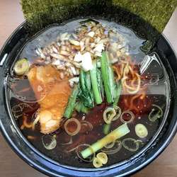 油多めだけどキレのある醤油スープに太麺。あまり無い組み合わせだけど美味い◎