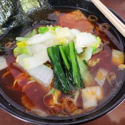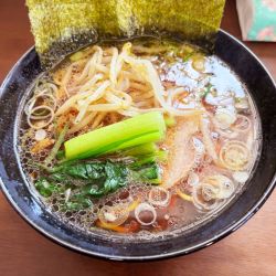 シンプルな見た目だけど、もやし、ほうれん草、海苔、ネギが乗っている。