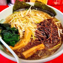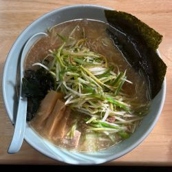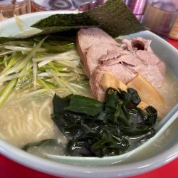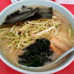 具材は味付けネギ、メンマ、海苔、メンマ、ワカメ。