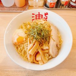 やっぱり専門店の油そば旨し。味変のニンニクソースはマスト。豚キムチが少し辛めで食欲そそる。