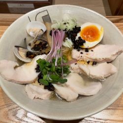 鶏と貝出汁の塩白湯、単品で1100円、ダイブ飯セットだと1370円。