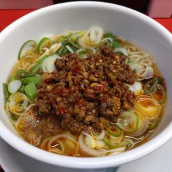 スープは、けっこうしっかりとした辛味と、ニンニクのアタック。強めのチューニング。