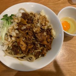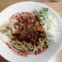 獣感バキバキのタレにほぐし豚と麺が絡みます。