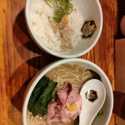 これといって特徴はないかもしれないが、いわゆる鶏白湯で間違いのない味。少しだけのせられたフライドオニオンなのか揚げたやつが香ばしさを掻き立てる。今日は外国人女性2人で切り盛りしていたが丁寧な調理と接客が好印象でした。