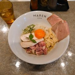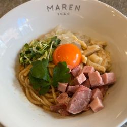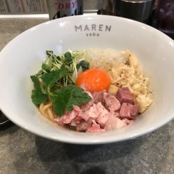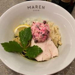 お洒落なお店で店内バルっぽい感じですね。シャレオツな店内で見た目も現代風。見た目しば漬けミンチが目を引きますが混ぜ合わせていくとバジル、大葉の風味が広がります。麺がもっちりしっかりなのでよく絡み美味い。後半カットレモンもあり最後まで飽きずにいけます。〆ミニ飯を良き仕事をしてくれます。