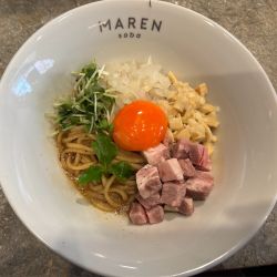 | メニュー | メニューの写真を見る しょうゆまぜそば 1050円 ミニ飯付き |