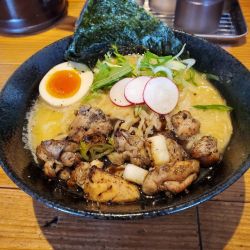 美味しいですが普通の鶏白湯という感じでしたが、炭焼の部分と合わさることで非常に美味