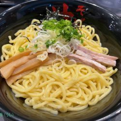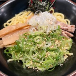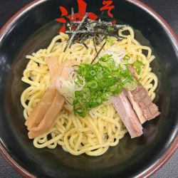 平日の夜8時過ぎ、呑みの後に訪問。先客4名、店内の券売機で標題の品を購入し、空いていたカウンター席に座り、店員さんにチケットを渡します。待つこと数分で配膳された丼には、スティック状のチャーシュー2本、メンマ、刻みネギ少々、刻み海苔少々、麺は中太ストレート麺、汁はシンプルな醤油味。グチャグチャに混ぜて食べます。具材が少し寂しく、トッピングを追加すれば良かった。