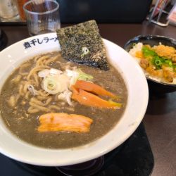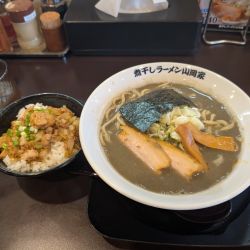 この日も帰省中の長男の運転で看板を付け替え初訪問扱いの煮干しの山岡家に訪問。