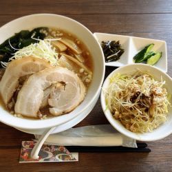 初訪にて「Aランチ(昭和醤油ラーメン・半ネギチャーシュー丼付)¥800」ぉ。