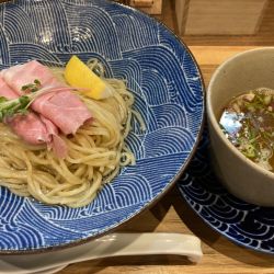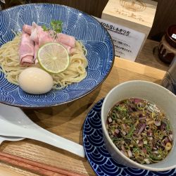 お洒落な雰囲気漂う店内。着席されているお客様もちらほら。入り口近くの食券機で購入して着席。 今回は鰹香る醤油つけそばにしました。 テーブルにはすでにお盆とレンゲが準備されていました。食券を渡す時に店員さんから「ネギなど苦手... 続きを見る
