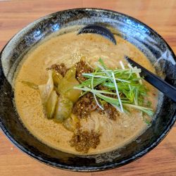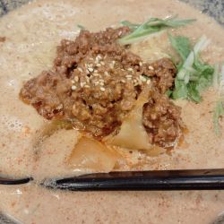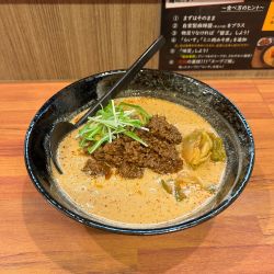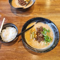 辛口担々麺¥1030円(麺固め味濃いめ)に半ライス¥150円を付けました。
