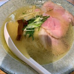 歯切れのいい細麺と、鶏脂多めの塩スープ。アクセントの針生姜もいいですね。