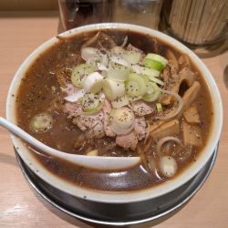 | 備考 | 渡なべスタイルによる運営。 支払は、キャッシュレスオンリーの食券形式。 札幌の森住製麺からわざわざ取り寄せた中太縮れ麺は、 届いてから数日間熟成させてプリッとした食感を引き出す。 麺量は並盛150g・大盛り225g。 チャーシューは豚肩ロースを 醤油で肉々しさを残す程度に煮込む。 またこの醤油は札幌ブラックのタレとして使用しており ブラックの黒さの素となっている。 塩ダレは昆布出汁をベースにシンプルにみりんや塩で味付け。 スープは野菜などは加えず豚のゲンコツと昆布のみから じっくり旨味を抽出。 調理はラードで豚ひき肉やニンニクを炒めてから 玉ねぎやもやしを追加。 そこにタレとスープを加えて高温で一気に仕上げる。 (以上はYoutube「ぶらり麺ch.」より) |