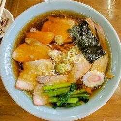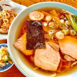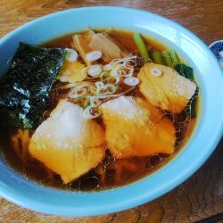 ラーメン注文の方には鶏ガラの煮込みがサービスされるすごいお店🎊出汁をとったと思われる鶏ガラは小骨も多いが肉もしっかりあり、着丼までの合間を楽しませてくれる✨麺は柔らかめのピロピロ縮れ中細麺が体感180gほどあり満腹🍜焼豚はデフォでも3枚付いてメンマは標準的ながらも鶏ガラや漬物などのサービスが人気の所以たるやたべさんでした🌈