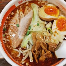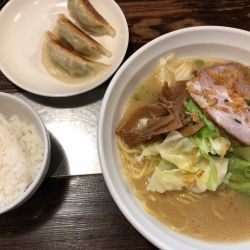 | 備考 | ステンレス風トタンと木材のしゃれた外装が目印。 スープは豚ゲンコツ・鶏ガラベース。 ランチセット(11:30~14:30)は200円で餃子3個と小ライスが付く。 高校生以下割引サービスあり。 |