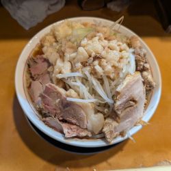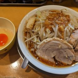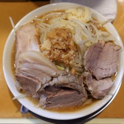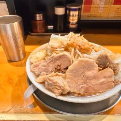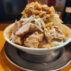 | 備考 | 武蔵小山の人気店「串キング」 店主鈴木亮さんが手がける二郎系ラーメンのお店。 料金前払い制。 ※麺量は、ミニラーメン 150g、 小ラーメン 230g、大ラーメン 345g。 ※無料トッピングは、ヤサイ、ニンニク、アブラ、カラメ。 デフォは全部普通。 コールのタイミングは、提供直前。 「ニンニク入れますか」と聞かれます。 |
