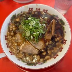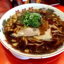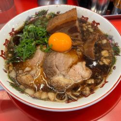 あっさり醤油ベース、黒色のスープ、醤油を凝縮したクコのあるスープ、めちゃ美味い。中細丸ストレート麺硬めで注文、スープとの相性は抜群ですね。角煮は1個1000gデカ、柔く味良好。卵の黄身がマイ... 続きを見る