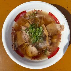 多加水のもちちゅる中太ちょい縮れ麺にスープを吸いまくりの薄切りバラチャーシュー。