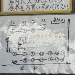 開店前の10時に受付開始し11時のオープンから30分間隔での総入替制(6席×8回転)となり指定時間に再度店頭へ集まる方式