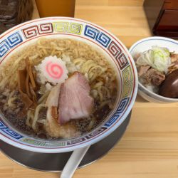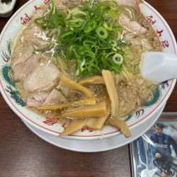 2026/1/5(月)11:30-12:00。開店直後で食券購入中1名、私でちょうど満席。こちらでは珍しく塩の限定。店主自ら配膳してくれ、「卓上調味料(胡椒、レモン酢、刻みニンニク)すべて合いますのでじゃんじゃん使って下さい」との説明。まずはスープ一口、確かに濃い。良い意味でサッポロ一番塩を濃くした感じ。美味い。ここのチャーシューが好き、吊るし焼きで少しショッパイが噛み応えあり... 続きを見る