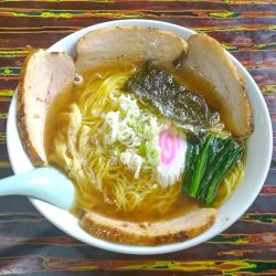 | メニュー | 中華蕎麦(醤油・塩・煮干し・海老辛) 950円 |