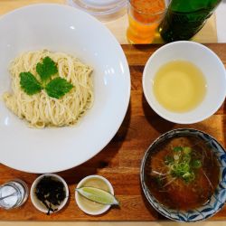 | メニュー | メニューの写真を見る 昆布水つけソバ 汐 1,100円 |