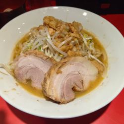 3回目の訪問。今日は趣向を変えてつけ麺に。はじめに好みとあぶら、ニンニクの量を聞かれた。つけ麺にはやさのマシなどは無いらしい。味薄めをオーダーし、アブラはマシマシ、ニンニクはマシにした。しばらくして着丼。つけ汁の器が大きい。節粉の香りが漂っている。まずはつけ汁に軽く入っているやさいから。つけ汁が絡んで美味い。味薄めでも、しっかりと味はする。まだ薄くてもいいかな。次にチャーシュー... 続きを見る