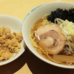 着席後3分ほどでミニチャーハン、5分ほどでワンタン麺着丼。