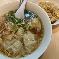 火曜日の日替わりメニューワンタン麺とミニチャーハンのセットを注文。