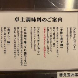 本メニューを選択。ニンニクと生姜の有無を訊かれ、有で頼んだ。暫く待って配膳。