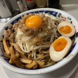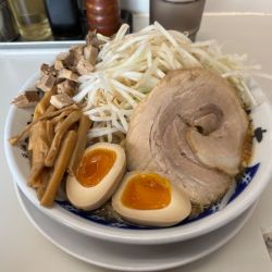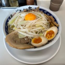 | 備考 | 提供直前に無料トッピングの有無・量を聞かれます 野菜の量(普通、多め、増し、増し増し) ニンニクの有無・量(そのままならニンニクは入りません) 脂 味濃い目 ポイントカードシステムあり(8スタンプで1杯無料) ランチらーめんは野菜の増量のみが不可、それ以外の増量可能 |