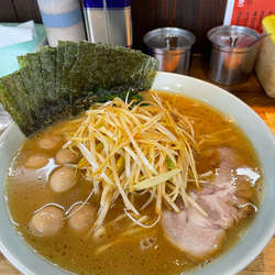「ラーメン(並)¥800+うずら玉子¥50」@壱六家 大和店の写真★2025/4/19(土) 11:40 もう25℃ 一昨年12月以来の訪問です。先客12人後客3人「ラーメン並+うずら玉子」の食券を購入後カウンター着席時に好みを麺硬め・脂多めで多めでお願いして 11:45 着丼。