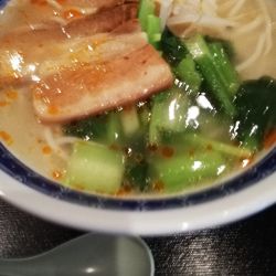 濃いめの塩味に柔らか角煮。うどんライクな麺と合う。ランチ時は店内満席。ちょっと変わったラーメンを所望の時におすすめ。