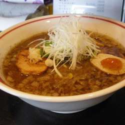 真っ黒スープの醤油ラーメン。麺は中太縮れ麺。チャーシューは、焦がしバラ肉のしっかりと煮込んだもので口に入れるととろける旨さ。辛味噌が人気だけど、醤油もいい。
