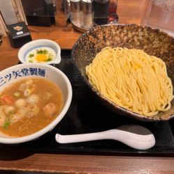 | 備考 | 2009年2月開店 三ツ矢堂製麺の4店舗目。 菓子用高級国産小麦を使用した自家製ストレートの太麺が特徴。本店は中目黒。 公式 http://idc-inc.jp/ 社長ブログ http://idcceo.exblog.jp/ スタッフブログ http://mitsuyado.exblog.jp/ 麺は並(250g)、中盛り(375g)、大盛り(500g)まで無料。 特盛り(750g)+100円、極盛り(1500g)+400円。 麺は茹で上げ後の表示なので注意(少なく感じる)。 麺の提供温度が4種類から選べます。名づけて「締め分け」。 熱もり: あつあつの麺 ぬめり落とし: 常温程度の麺 冷もり: ほんのり冷たい麺 氷締め: 氷水でギンギンに締めた冷たい麺 通常は冷もりで提供されます。 その他季節ごとの限定メニュー、ご飯もの、お酒やおつまみメニューも豊富。 ラーメン屋というより、軽く飲めるつけ麺屋。 |